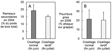 Une étude menée par Agroscope dans le vignoble de La Côte en Suisse de 2003 à 2006 a comparé un cisaillage normal juste après floraison (fin juin) à un cisaillage tardif juste avant véraison (fin juillet) de 2003 à 2006. Deux variantes avec deux répétitions chacune ont été mises en place: 1) premier cisaillage correspondant au stade phénologique fin floraison (BBCH 67-69, fin juin), et 2) premier cisaillage tardif au stade début véraison (BBCH 81, fin juillet). La période du premier cisaillage a été l’unique facteur de variation entre les deux traitements.